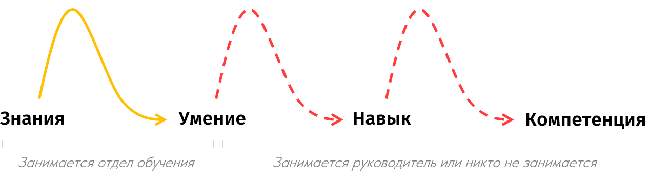 Несколько дней все вдохновлены, обмениваются обратной связью и совершают первые попытки применения новых знаний. У кого-то получается, у кого-то нет, вы как руководитель стараетесь это скорректировать и начинаете терять в своей операционной эффективности. Встаёт выбор – операционка или развитие подчинённых? Думаю ответ очевиден. Мы всегда стремимся к тому, что для нас наиболее привычно. Как итог, проходит несколько недель и эффект от обучения исчезает, как будто его и не было.